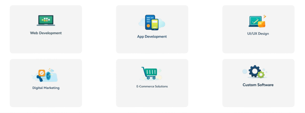 We specialize in website development, app development, UI/UX design, and digital marketing.