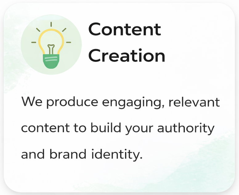 We create engaging, high-quality content that connects with your audience and strengthens your brand identity.